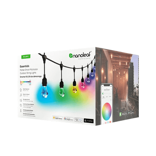 <div style="font-family: Arial, sans-serif; font-size: 14px; color: #333; line-height: 1.6;"> <h2 style="font-size: 18px; color: #111; border-bottom: 2px solid #ccc; padding-bottom: 6px;">Nanoleaf Matter String Lights Indoor – Vibrant Smart Lighting for Every Occasion</h2> <p>Create amazing light automation with these smart lights. The Nanoleaf Matter String Lights Indoor create the perfect ambience in your back yard, front yard or even pathway. With its 20 addressable RGBWIC LED bulbs, IP65 Water resistance and 16+ million colours and animations. You can control the Nanoleaf Matter Party Lights through your phone with Bluetooth, Wi-fi or Matter. With Nanoleaf App or any Smart Home Ecosystem such as Apple HomeKit, Google Home, Alexa, SmartThings and more you can get the ease of remote control over the outdoor string lights!</p> <h3 style="font-size: 16px; margin-top: 24px;">Key Features of Nanoleaf Matter String Lights:</h3> <ul style="padding-left: 20px;"> <li>Matter Compatibility</li> <li>Works with smart home ecosystems</li> <li>Offers 16 million colors and dynamic effects</li> <li>Voice control</li> <li>Energy-efficient LED</li> <li>Indoor/outdoor use</li> <li>Scheduling and automation</li> </ul> <h3 style="font-size: 16px; margin-top: 24px;">Specifications of Nanoleaf Matter Party Lights:</h3> <table style="width: 100%; border-collapse: collapse; margin-bottom: 20px;"> <thead> <tr> <th style="padding: 8px; background-color: #f2f2f2; border: 1px solid #ccc;">Specification</th> <th style="padding: 8px; background-color: #f2f2f2; border: 1px solid #ccc;">Details</th> </tr> </thead> <tbody> <tr> <td style="padding: 8px; border: 1px solid #ccc;">Connectivity</td> <td style="padding: 8px; border: 1px solid #ccc;">Wi-Fi 2.4GHz (via Matter), Thread</td> </tr> <tr> <td style="padding: 8px; border: 1px solid #ccc;">Protocol</td> <td style="padding: 8px; border: 1px solid #ccc;">Matter</td> </tr> <tr> <td style="padding: 8px; border: 1px solid #ccc;">Color Options</td> <td style="padding: 8px; border: 1px solid #ccc;">16 Million Colors</td> </tr> <tr> <td style="padding: 8px; border: 1px solid #ccc;">Length</td> <td style="padding: 8px; border: 1px solid #ccc;">Typically 20–40 ft (varies by model)</td> </tr> <tr> <td style="padding: 8px; border: 1px solid #ccc;">Number of LEDs</td> <td style="padding: 8px; border: 1px solid #ccc;">Variable (depends on the specific model)</td> </tr> <tr> <td style="padding: 8px; border: 1px solid #ccc;">Power Source</td> <td style="padding: 8px; border: 1px solid #ccc;">Plug-in (110–240V)</td> </tr> <tr> <td style="padding: 8px; border: 1px solid #ccc;">Operating Temperature</td> <td style="padding: 8px; border: 1px solid #ccc;">0°C to 40°C (32°F to 104°F)</td> </tr> <tr> <td style="padding: 8px; border: 1px solid #ccc;">Durability</td> <td style="padding: 8px; border: 1px solid #ccc;">Weather-resistant for outdoor use</td> </tr> <tr> <td style="padding: 8px; border: 1px solid #ccc;">Voice Control</td> <td style="padding: 8px; border: 1px solid #ccc;">Siri, Google Assistant, Alexa</td> </tr> <tr> <td style="padding: 8px; border: 1px solid #ccc;">Scheduling</td> <td style="padding: 8px; border: 1px solid #ccc;">Yes</td> </tr> <tr> <td style="padding: 8px; border: 1px solid #ccc;">Automation</td> <td style="padding: 8px; border: 1px solid #ccc;">Yes</td> </tr> </tbody> </table> <h3 style="font-size: 16px;">Why Choose Nanoleaf LED String Lights Outdoor and Indoor:</h3> <ul style="padding-left: 20px;"> <li>Can easily connect with Apple HomeKit, Google Home and Amazon Alexa.</li> <li>Matter compatible.</li> <li>Over 16 million colors available.</li> <li>A practical and stylish choice for festive celebrations.</li> </ul> </div>
