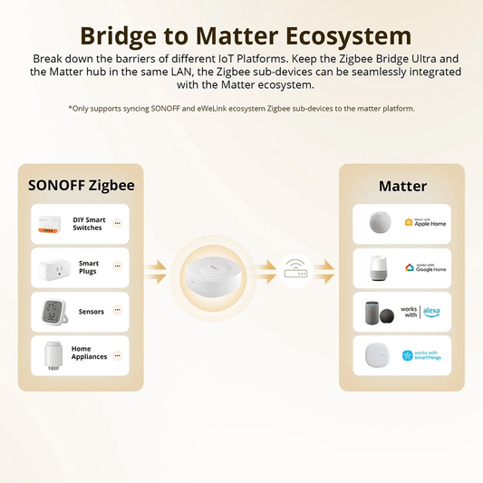 <div style="font-family: Arial, sans-serif; font-size: 14px; color: #333; line-height: 1.6;"> <h2 style="font-size: 18px; color: #111; border-bottom: 2px solid #ccc; padding-bottom: 6px;"> SONOFF ZBBridge-U – Zigbee 3.0 Matter Bridge for HomeKit </h2> <p>The SONOFF ZBBridge-U is a powerful Zigbee 3.0 Matter Bridge designed to add ZigBee devices to HomeKit. With this Matter compatible Zigbee HomeKit hub you can manage and control your ZigBee devices with the Apple Home app and Siri voice control.</p> <h3 style="font-size: 16px; margin-top: 24px;">Key Features:</h3> <ul style="padding-left: 20px;"> <li> <strong>Zigbee 3.0 Compatibility:</strong> This Zigbee HomeKit hub supports the latest Zigbee 3.0 standard. This ensures a vast array of smart device compatibility from various manufacturers.</li> <li> <strong>Matter Support:</strong> This Zigbee Matter bridge enables interoperability between Zigbee devices and the Matter protocol. This enables seamless integration and control.</li> <li> <strong>Voice Assistant Integration:</strong> Creating a Zigbee Alexa, or even a Zigbee Google Assistant is possible with this Zigbee Matter hub. It has a wide range of popular voice assistant compatibility, allowing you to gain hands free control over the Zigbee products.</li> <li> <strong>Compact and Discreet Design:</strong> It has a small and sleek form factor. This Zigbee hub HomeKit can be placed in any tiny space.</li> </ul> <h3 style="font-size: 16px; margin-top: 24px;">Specifications:</h3> <table style="width: 100%; border-collapse: collapse; margin-bottom: 20px;"> <tbody> <tr> <td style="border: 1px solid #ccc; padding: 8px;"><strong>Certifications</strong></td> <td style="border: 1px solid #ccc; padding: 8px;">CE, FCC, RoHS</td> </tr> <tr> <td style="border: 1px solid #ccc; padding: 8px;"><strong>Network Interface</strong></td> <td style="border: 1px solid #ccc; padding: 8px;">RJ45 (10/100Mbps)</td> </tr> <tr> <td style="border: 1px solid #ccc; padding: 8px;"><strong>Power Supply</strong></td> <td style="border: 1px solid #ccc; padding: 8px;">Type-C, 5V DC 1A</td> </tr> <tr> <td style="border: 1px solid #ccc; padding: 8px;"><strong>Wireless Connectivity</strong></td> <td style="border: 1px solid #ccc; padding: 8px;">Wi-Fi IEEE 802.11b/g/n 2.4GHz, Zigbee 3.0</td> </tr> <tr> <td style="border: 1px solid #ccc; padding: 8px;"><strong>Working Temperature</strong></td> <td style="border: 1px solid #ccc; padding: 8px;">-10°C~40°C</td> </tr> <tr> <td style="border: 1px solid #ccc; padding: 8px;"><strong>Humidity</strong></td> <td style="border: 1px solid #ccc; padding: 8px;">5%-95%RH, non-condensing</td> </tr> <tr> <td style="border: 1px solid #ccc; padding: 8px;"><strong>Casing Material</strong></td> <td style="border: 1px solid #ccc; padding: 8px;">PC+ABS</td> </tr> </tbody> </table> <h3 style="font-size: 16px; margin-top: 24px;">Installation Steps:</h3> <ul style="padding-left: 20px;"> <li> <strong>Step 01:</strong> Remove the device and all included accessories from the packaging.</li> <li> <strong>Step 2:</strong> Plug the ZBBridge-U into a power outlet using the provided adapter.</li> <li> <strong>Step 3:</strong> Install the SONOFF app on your smartphone from the App Store or Google Play.</li> <li> <strong>Step 4:</strong> Follow Setup Instructions: Open the app and follow the on-screen instructions to connect the ZBBridge-U to your Wi-Fi network.</li> <li> <strong>Step 5:</strong> Add Devices: Start adding your Zigbee and Matter-compatible devices to the ZBBridge-U through the app for easy control and automation.</li> </ul> <h3 style="font-size: 16px; margin-top: 24px;">Why choose Sonoff ZigBee Matter Bridge?</h3> <p>The real question is, why not choose Sonoff Zigbee HomeKit Hub. This hub single-handedly allows you to create multiple integrations with its Matter compatibility. It has a Zigbee 3.0 Matter Bridge capabilities. It also allows Zigbee Alexa and Zigbee Google Assistant integrations too, making it a convenient solution for Zigbee HomeKit or any other Zigbee integration you desire.</p> </div>